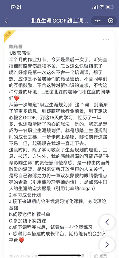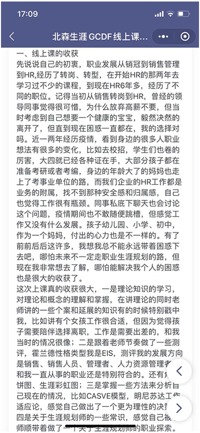 • “堅定了未來做一名生涯規(guī)劃師,幫助周圍更多的同事和朋友”