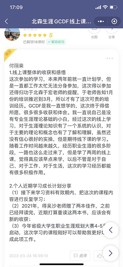 • “這次上課收獲很大,對自己的職業(yè)生涯有了更清晰的認知”