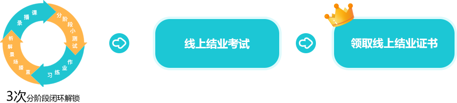 錄播課程闖關解鎖,分單元解鎖小測試,及時檢驗知識點掌握程度,激勵學員主動學習,每3天1次直播場景應用,不遺漏任何一個知識點。