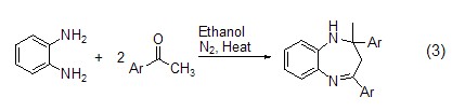 利用鄰二胺及其衍生物與2-乙?;拎樵?,以對磺酸為催化劑,在甲醇溶劑中,加熱 (50~60 oC) 攪拌反應(yīng)10~20 h卻得到了并六元環(huán)產(chǎn)物 (式2)[4,5]。